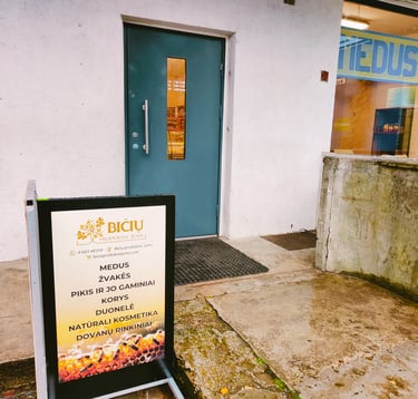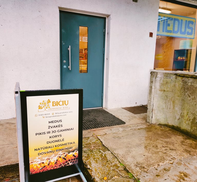 Kviečiame apsilankyti mūsų jaukioje parduotuvėlėje Kaune! Čia rasite visus mūsų bičių produktus – nuo medaus iki natūralios kosmetikos ir žvakių. Galėsite pauostyti, išbandyti kosmetiką, pasitarti ir išsirinkti dovanas gyvai.